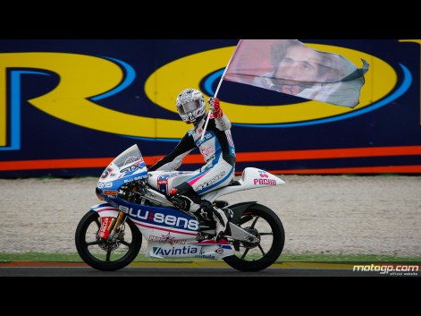 Nicolas Terol was crowned 125cc world champion after Johann Zarco, his closest challenger disappointingly crashed out early in the race. Danny Webb riding the Mahindra bike had set the fastest time in qualifying and after a great start lead the race for the first few laps. The race was won by the star of the future Maverick Vinales who with support from Paris Hilton (!) has had a phenomenal start to his international career and was awarded the Rookie of the Year.