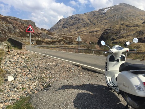 A bed in Fort William made far more sense and so after 6 hours sleep I climbed back onboard the brilliant Vespa GTS and headed north once more.