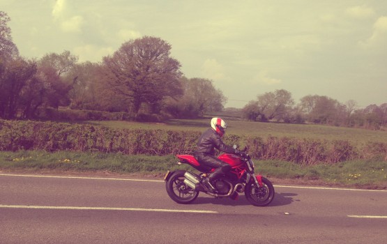 It’s for fun and loads of it! The Monster has a sportier riding position than the Diavel or the Multistrada, however the high bars provide all day comfort and the pegs aren’t too taxing at the same time as lending themselves well to moving around the bike when you need to get the adrenaline flowing and make a little more progress!